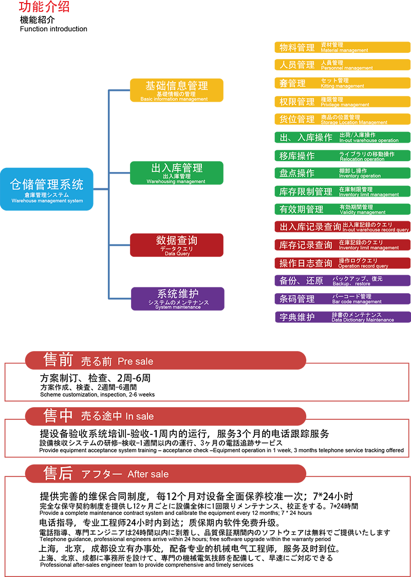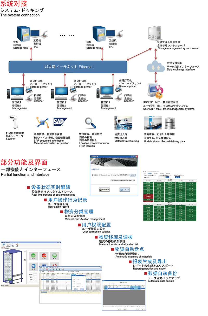 หัวใจสำคัญของโซลูชั่นเหล่านี้คือระบบการจัดการคลังสินค้าที่พัฒนาขึ้นอย่างอิสระของ บริษัท (WMS) ระบบขั้นสูงนี้ไม่เพียง แต่มีประสิทธิภาพในการจัดการความซับซ้อนของคลังสินค้าสมัยใหม่เท่านั้น แต่ยังมีความยืดหยุ่น สามารถปรับและปรับขนาดได้ตามข้อกำหนดเฉพาะของลูกค้าเพื่อให้มั่นใจว่ารองรับการดำเนินงานขนาดเล็กและองค์กรขนาดใหญ่ WMS รวมเข้ากับระบบธุรกิจอื่น ๆ อย่างราบรื่นเช่น ERP, MES และ SAP ซึ่งนำเสนอแพลตฟอร์มแบบครบวงจรสำหรับธุรกิจสำหรับการจัดการการดำเนินงานของพวกเขา