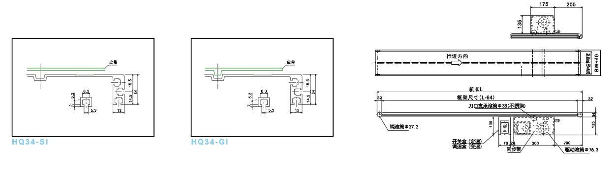 ประเภทมาตรฐานศรี ●นี่คือประเภทมาตรฐานของสายพานลำเลียงเข็มขัด 34 มม. ศูนย์กลางการขับขี่ถูกเคลื่อ...