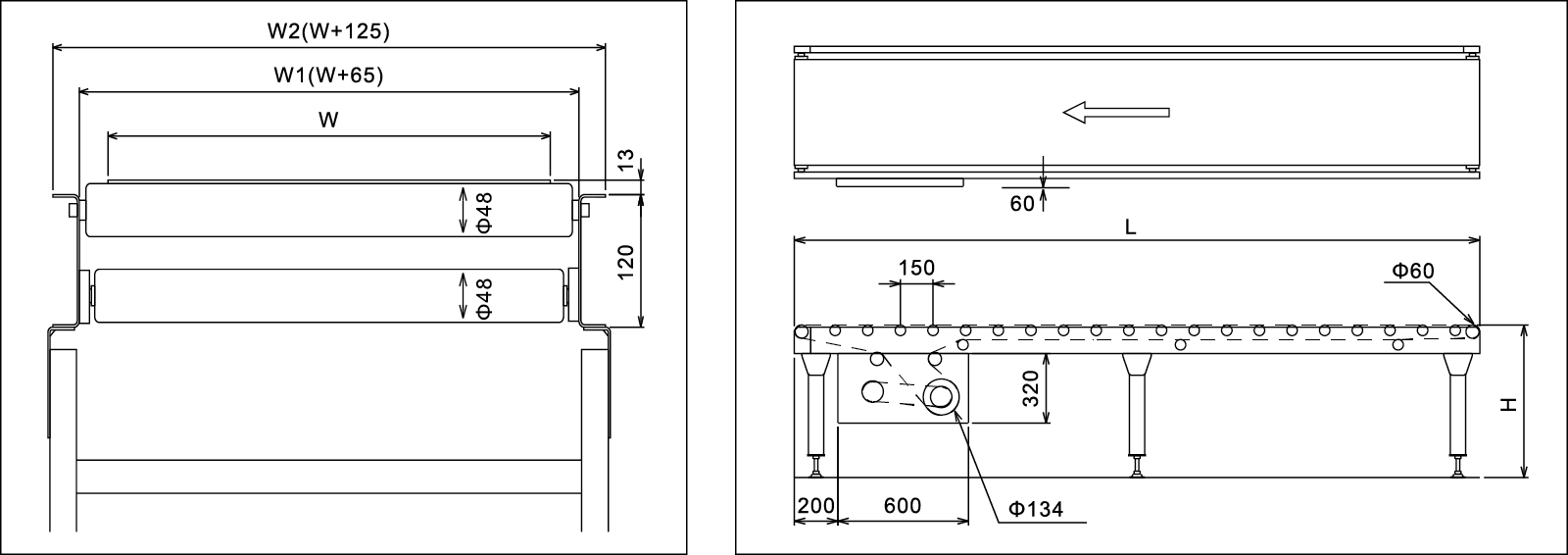 | ความกว้างของสายพานลำเลียง | W (มม.) | W 125 |