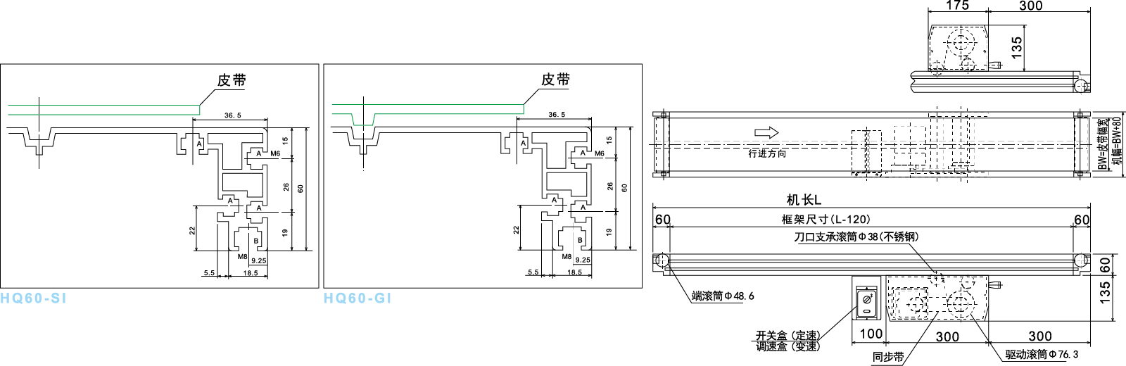มิติที่แท้จริงของสายพานแคบ 5 มม. กว่าสายพานมาตรฐานด้านบน หากความยาวของเครื่องเกิน 4m โดยมีข้อกำหนดของเข็มขัด 500, 600 สำหรับความกว้างมันจะแคบลง 10 มม.