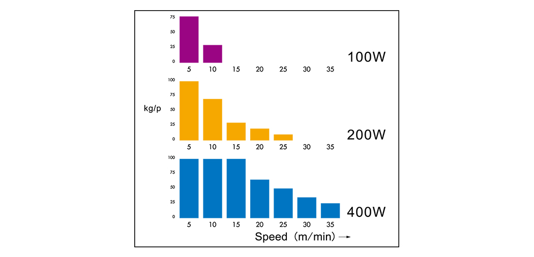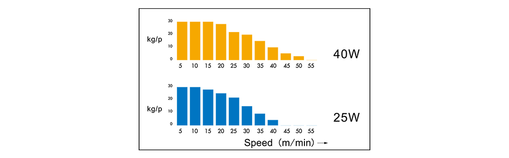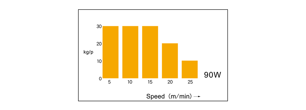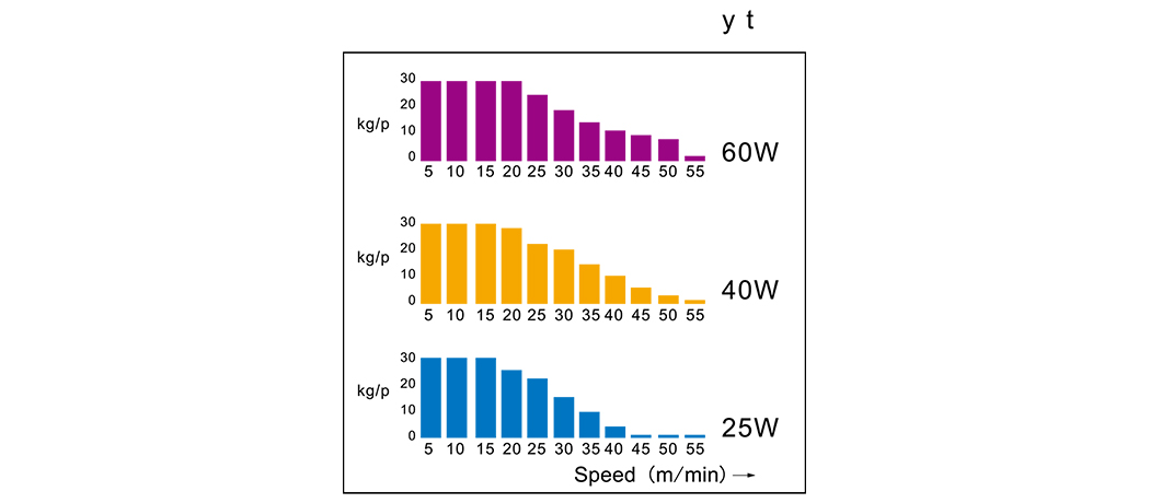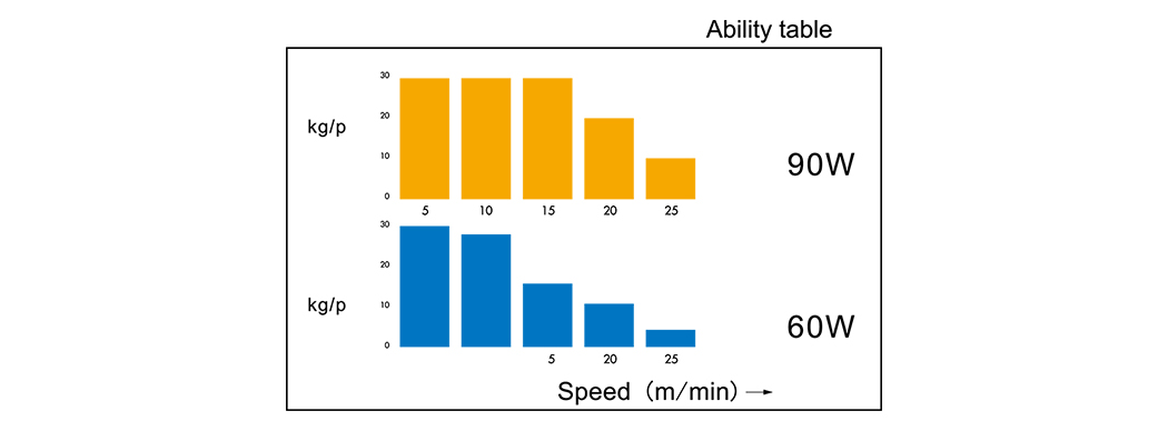 | 300 ~ 3,000 | 40W | ความเร็วคงที่ 60W ความเร็วตัวแปร 90W |