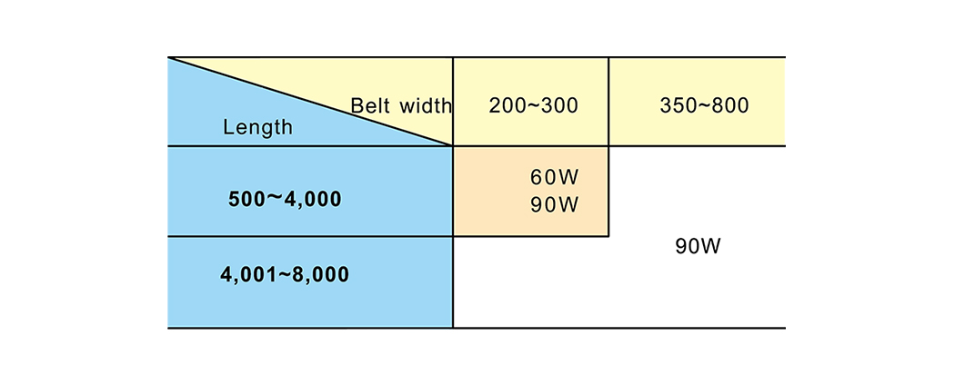 | ความกว้างของเข็มขัด | BW | 300 ~ 600 | 300 ~ 500 | 300 ~ 700 | 300 ~ 700 |