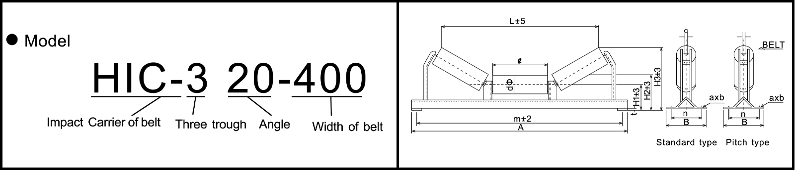 ลูกกลิ้งสามร่องสามลูกเป็นองค์ประกอบสำคัญของสายพานลำเลียงรางโดยส่วนใหญ่ใช้สำหรับการขนส่งทรายแร่ธาตุ ฯลฯ โดยทั่วไปจะตั้งไว้ที่ 20 หรือ 30 องศาแม้ว่ามุมอื่น ๆ สามารถปรับแต่งได้สำหรับการใช้งานพิเศษ วัสดุรวมถึงเหล็กมาตรฐานพร้อมตัวเลือกสำหรับการเคลือบยางพอลิเมอร์หรือสแตนเลสเพื่อให้เหมาะกับความต้องการที่หลากหลาย