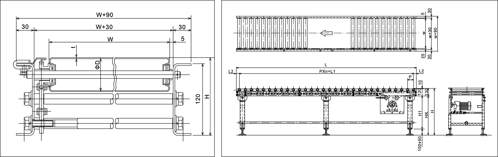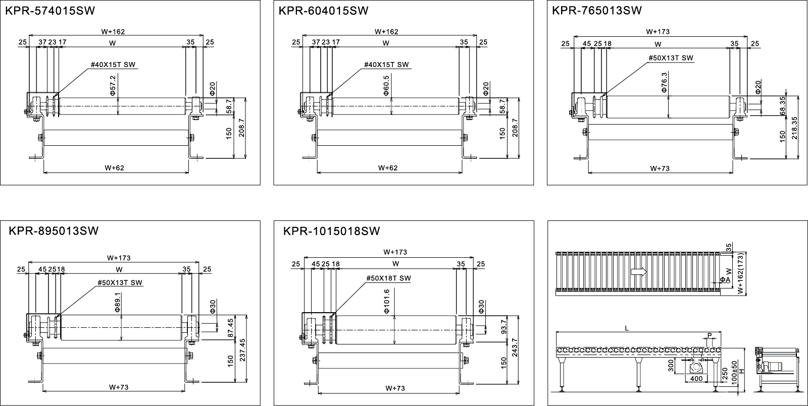 | ความกว้างของลูกกลิ้ง | W (มม.) | 300 ~ 2000 | 300 ~ 2000 | 300 ~ 2000 | 300 ~ 2000 | 300 ~ 2000 |