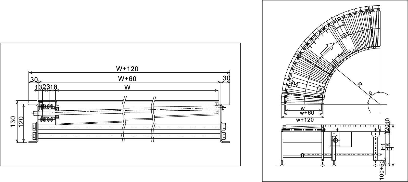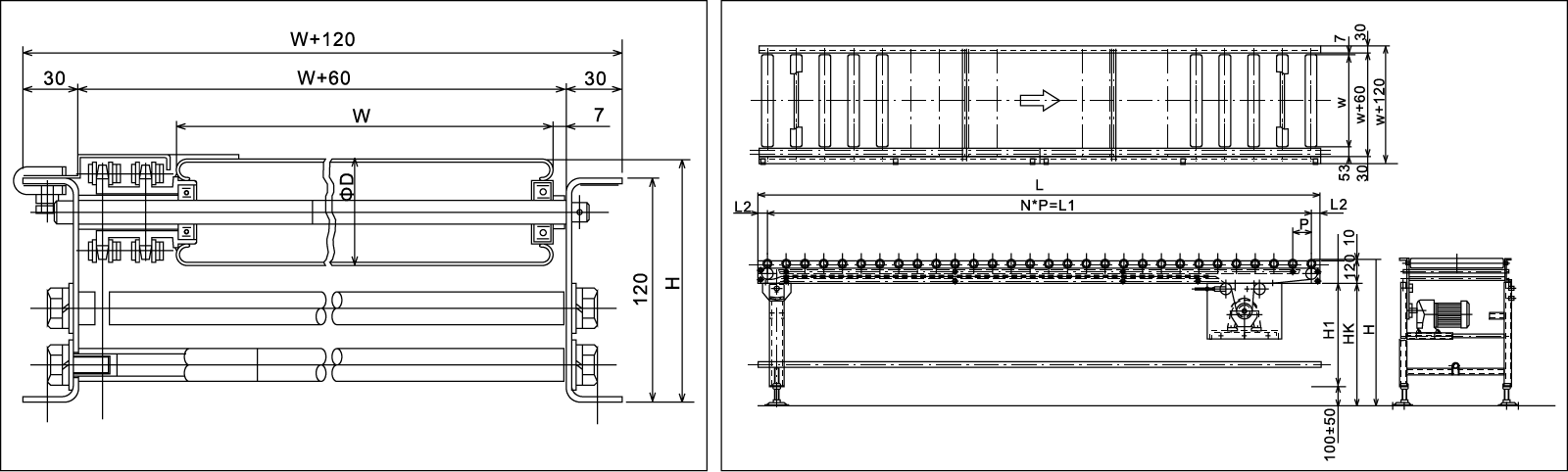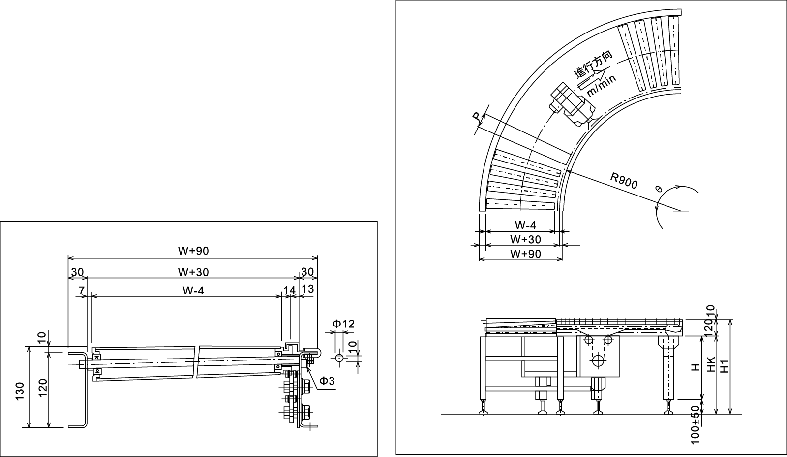 | ความกว้างของโซ่ (W) | 400 ~ 1500 | 400 ~ 2000 |