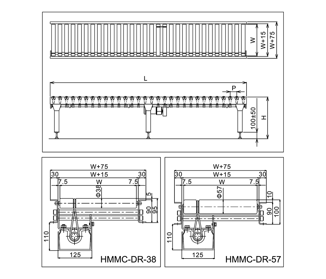 | ลูกกลิ้งพิทช์ P | 50、75、100、150 | 75、100、150 | 75、100、150 | 75、100、150 | 75、100、150 |