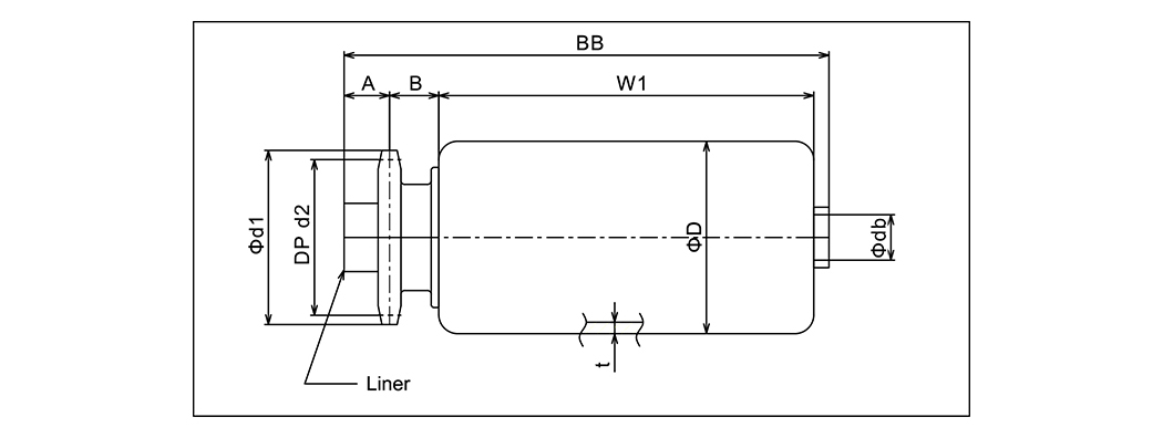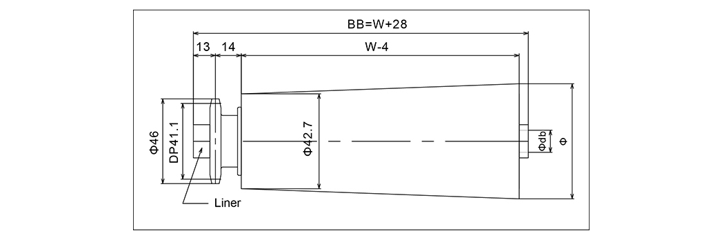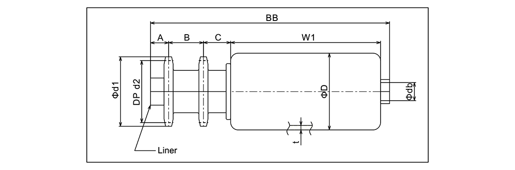 | พิมพ์ | ขนาดลูกกลิ้ง | ความกว้างของลูกกลิ้ง | วัสดุลูกกลิ้ง | การแบก | เส้นผ่านศูนย์กลางเพลา | ขนาดซับ | เฟือง | D1 | D2 | อัน | ข | C | W1 | BB |