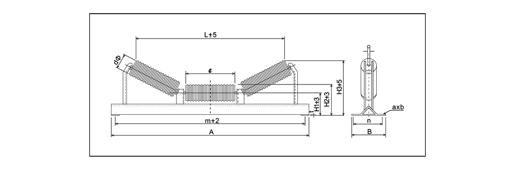 | R ศูนย์ | 2000 | ความยาวรวม | ความกว้างของลูกกลิ้ง | wde ของสายพานลำเลียง | เส้นทางแคบ | เส้นผ่าศูนย์กลางขนาดใหญ่ | กำลังโหลดลูกกลิ้ง | น้ำหนักลูกกลิ้ง | |||