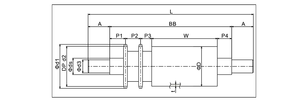 | พิมพ์ | ขนาดลูกกลิ้ง | Rollerwidth | ลูกกลิ้ง Matenal | หมี | เส้นผ่านศูนย์กลางเพลา | เฟือง | D1 | D2 | D3 | อัน | l | BB | P1 | P2 | P3 | P4 |