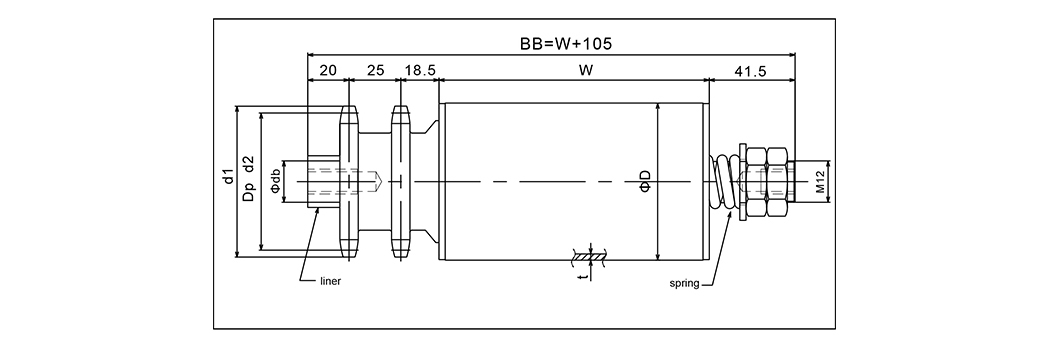 | พิมพ์ | ขนาดลูกกลิ้ง | ความกว้างของลูกกลิ้ง | วัสดุลูกกลิ้ง | การแบก | เส้นผ่านศูนย์กลางเพลา | ขนาดซับ | เฟือง | D1 | D2 |