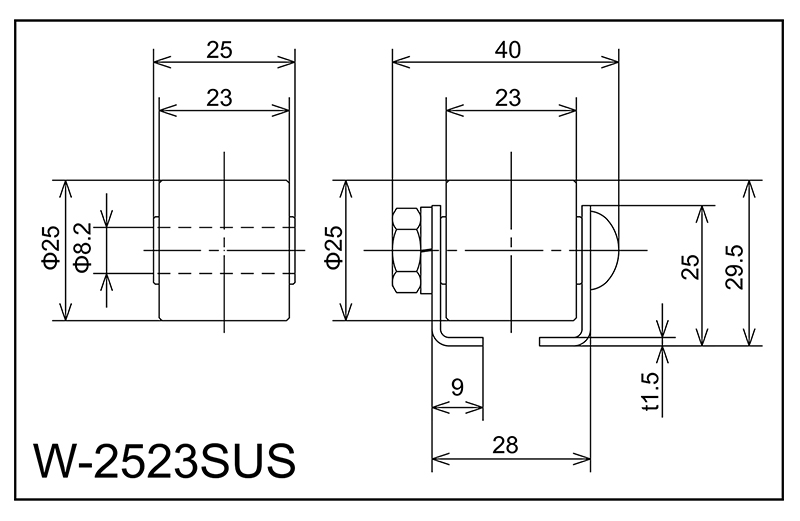 | W-2523SUS | 25x23x8.2x25 | M8X35L | 25x28x9x40x1.5 | 29.5 | 1,000 · 1500 · 2000 | 30 · 35 | 50 | A |