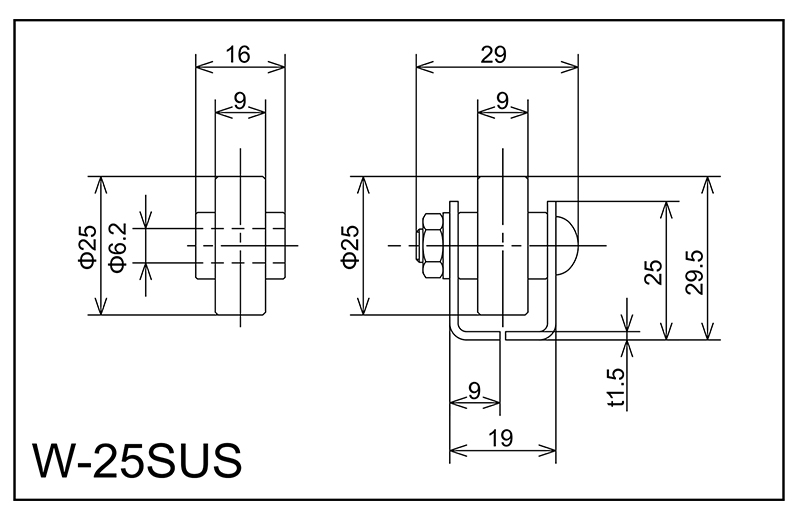 | W-25sus | 25x9x6.2x16 | M6X25L | 25x19x9x29x1.5 | 29.5 | 1,000 · 1500 · 2000 | 30 · 35 | 30 | A |