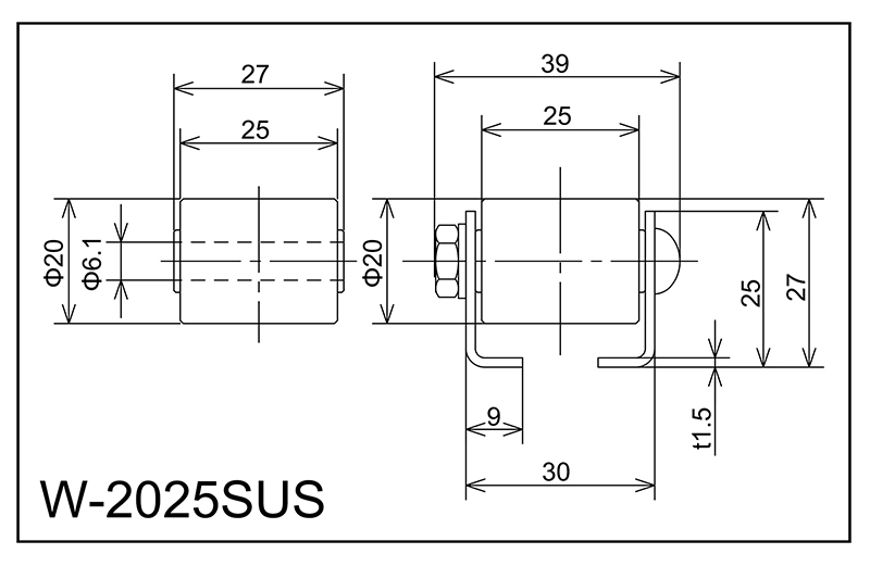 | W-20125SUS | 20x25x6.1x27 | M6X35L | 25x30x9x39x1.5 | 27 | 1,000 · 1500 · 2000 | 25 · 30 · 35 | 40 | A |